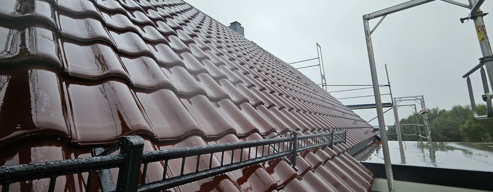 I dag ferdigstilte en av våre proffkunder dette flotte taket med Erlus SL 58 glasert teglstein burgunder